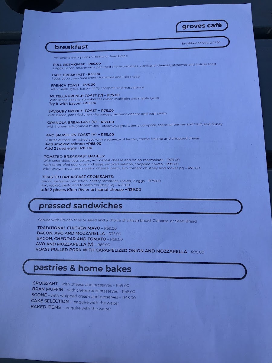 Groves Cafe Menu